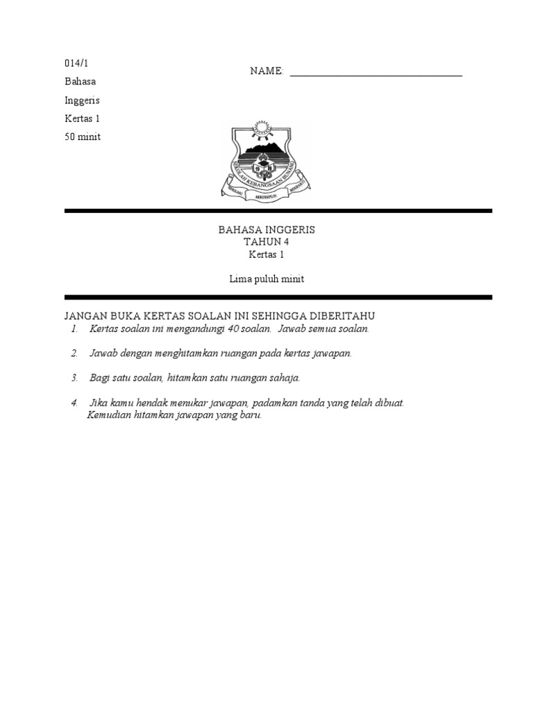 Kertas Bm Tahun 4 Page 1 Line 17qq Com from img.17qq.com Soalan english bi bahasa inggeris tahun 3 paper 2. Soalan percubaan upsr johor 2012 bahasa inggeris kertas 1. Pilih jawapan yang terbaik daripada pilihan a, b dan c atau a, b, c dan d. Soalan peperiksaan bahasa inggeris kssr tahun 1. Bahasa melayu (bm), bahasa inggeris (english), matematik (mathematics), sains (science) Soalan pertengahan tahun sejarah tahun 4 kssr sejarah peperiksaan pertengahan tahun tahun 4 2014 sejarah jangan buka kertas soalan ini sehingga diberitahu. Kertas soalan ujian bahasa inggeris tahun 4 2017. Sehingga diberitahu kod pemeriksa :